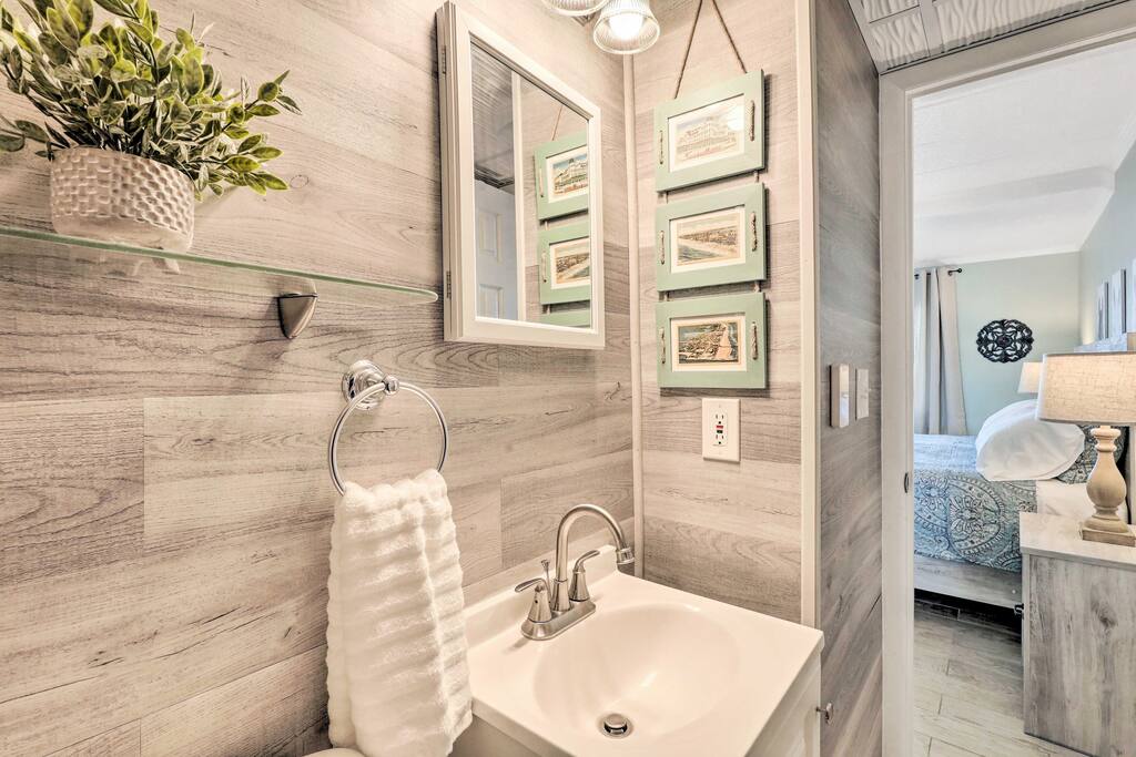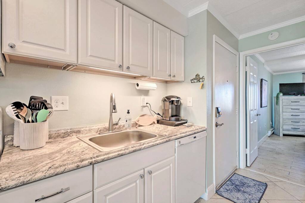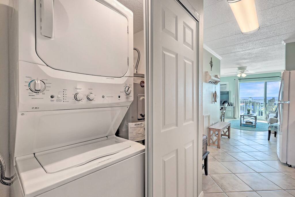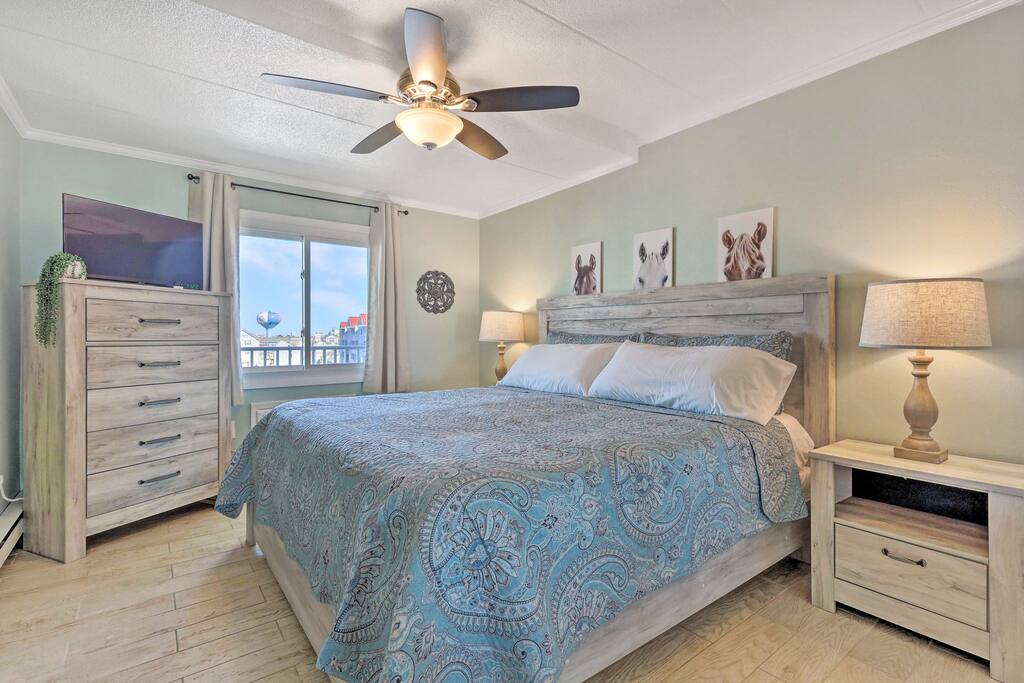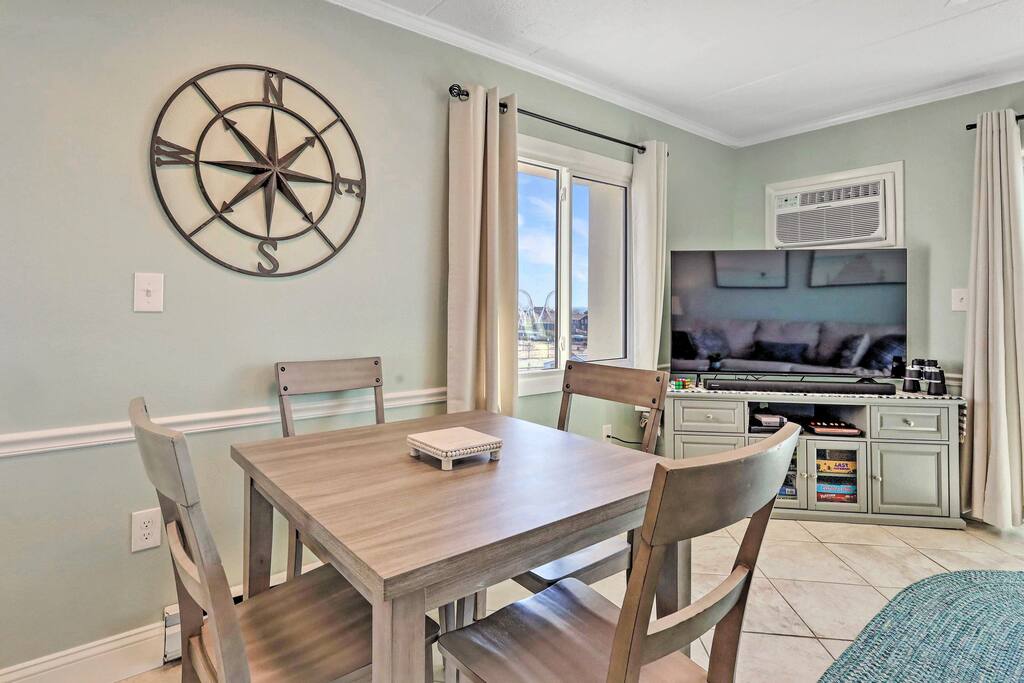 Furnished Balcony | Elevator Available | Central Location | In-Unit Laundry | Seasonal Community Outdoor Pool (Depth 3'-6') Whether you’re planning a romantic beach retreat with your significant other or an ocean vacation with your best friends, this condo is the perfect home base. Bedroom: King Bed | Living Room: Queen Sleeper Sofa INDOOR LIVING: Smart TVs w/ complimentary Netflix & Hulu, Blu-Ray Player, retro Atari & Nintendo game systems, board games, books, phone-charging station OUTDOOR LIVING: Furnished balcony, dining area, water views of the ocean, inlet, and bay (home base of the Coast Guard) KITCHEN: Refrigerator, stove/oven, dishwasher, dishware/flatware, cooking basics, spices, Keurig coffee maker, blender, Crockpot, microwave, toaster, water filter GENERAL: Free WiFi, keyless entry, 2 A/C wall units, electric heating, washer/dryer, linens/towels, laundry detergent, trash bags, paper towels, hair dryer FAQ: Step-free access, elevator on-site, Ring doorbell & exterior security camera (facing out) PARKING: Reserved space in the building's parking lot (1 vehicle)