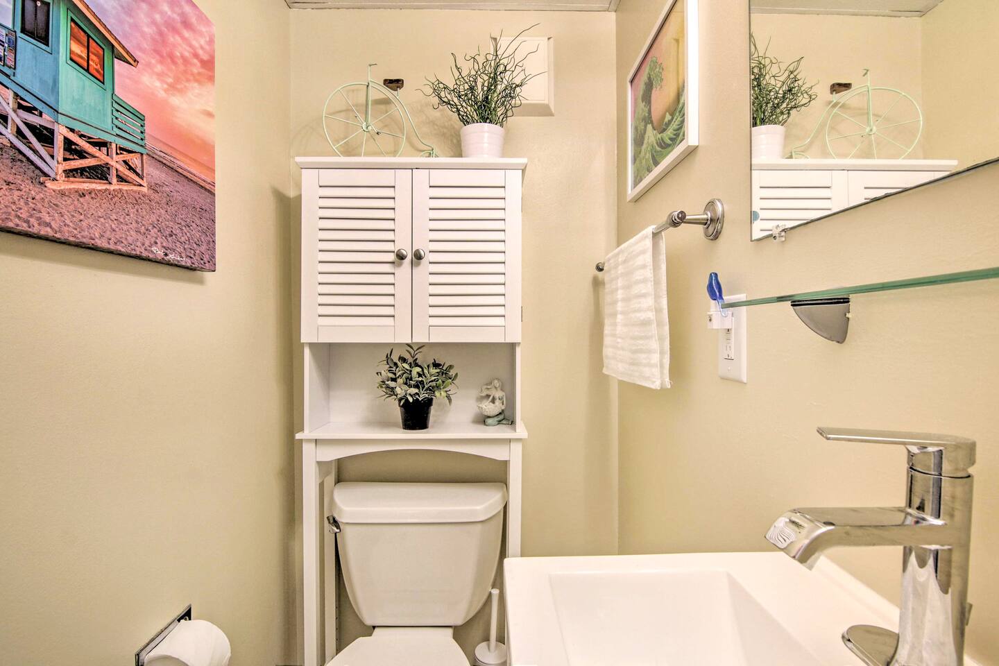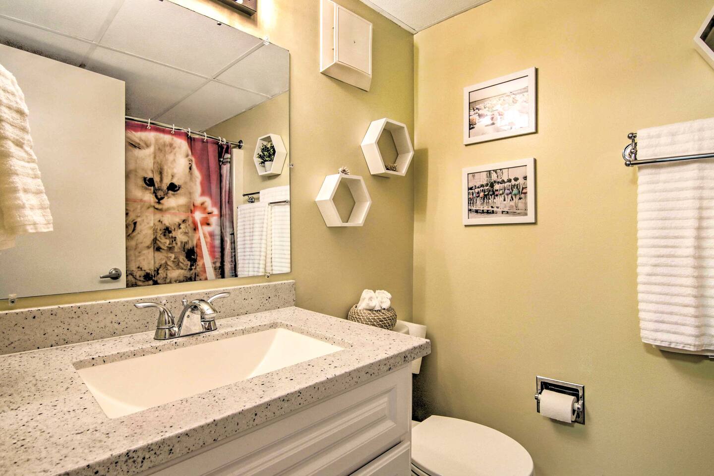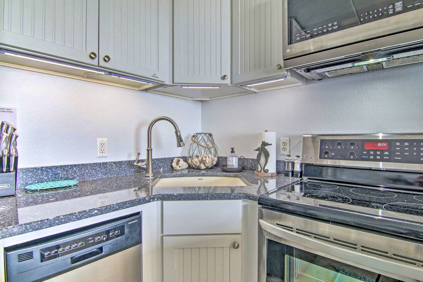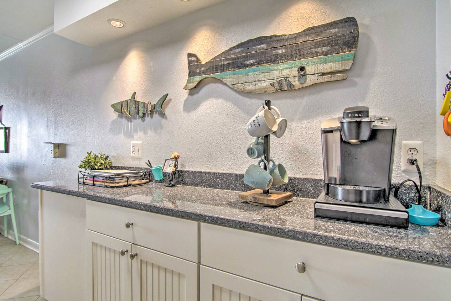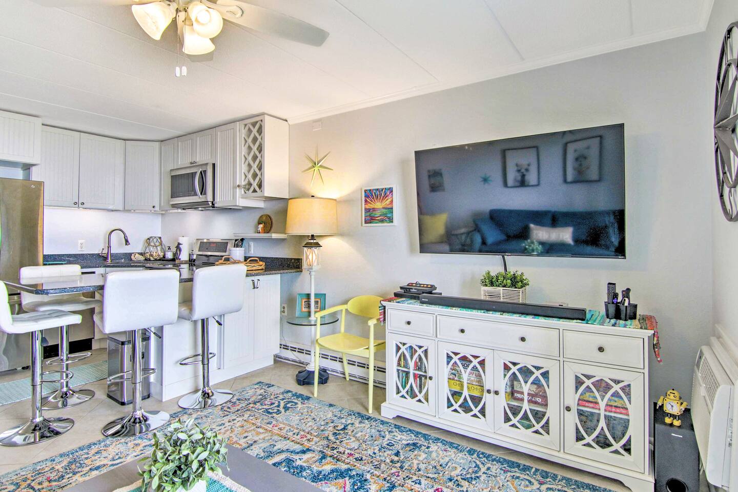 Furnished Balcony | Elevator Available | < 1 Mile to Local Eats Whether you’re planning a romantic beach retreat with your significant other or an ocean vacation with your best friends, this condo is the perfect home base. Bedroom: Queen Bed | Living Room: Full Sleeper Sofa w/ Gel Memory Foam Mattress INDOOR LIVING: Smart TVs w/ complimentary Netflix & Hulu, Blu-Ray Player, retro Atari & Nintendo game systems, board games, books, phone-charging station KITCHEN: Fully equipped, cooking basics, dishware/flatware, Keurig coffee maker, blender, toaster, Crock-Pot GENERAL: High-speed free WiFi, 2 A/C wall units, washer/dryer, keyless entry, linens, bath towels (beach towels not provided) FAQ: 2 exterior security cameras (facing out) SUITABILITY: 2nd-floor unit, 1 flight of steps required for entry, shared elevator available once inside PARKING: Designated parking spot (1 vehicle), additional shared parking spaces (multiple vehicles)