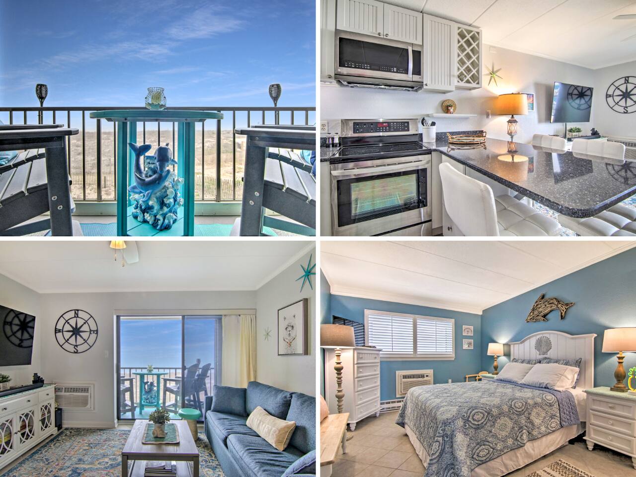 Wake up to stunning ocean views in our beautifully decorated condo, just steps to the beach! Enjoy a clean, whimsical space with private balcony and comfortable, well-stocked interior. Guests love the cozy, home-like feel, well-equipped kitchen, and thoughtful extras like games & streaming apps. Easy check-in, responsive hosts, and prime midtown location make it a perfect beachside getaway for couples & small families alike.