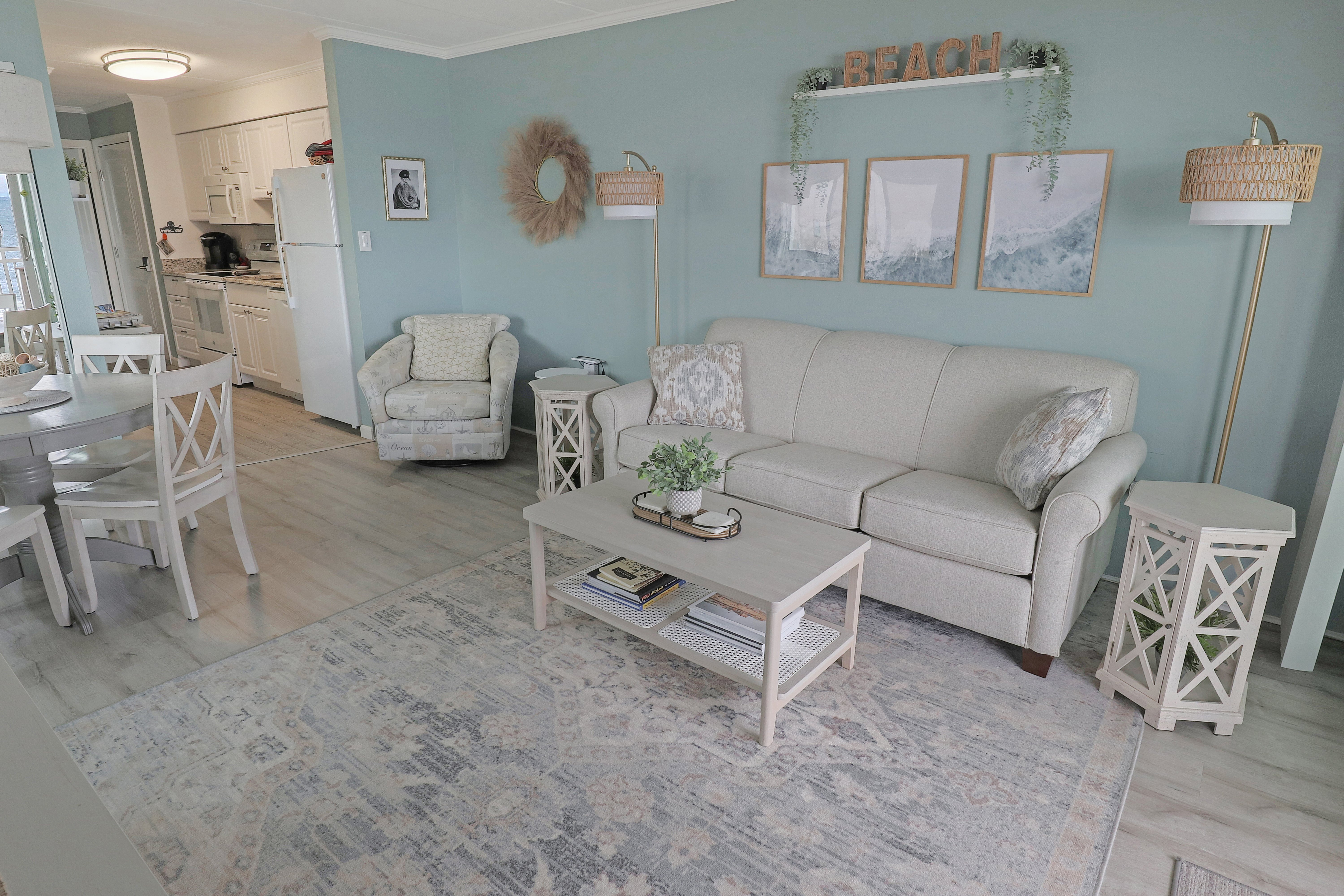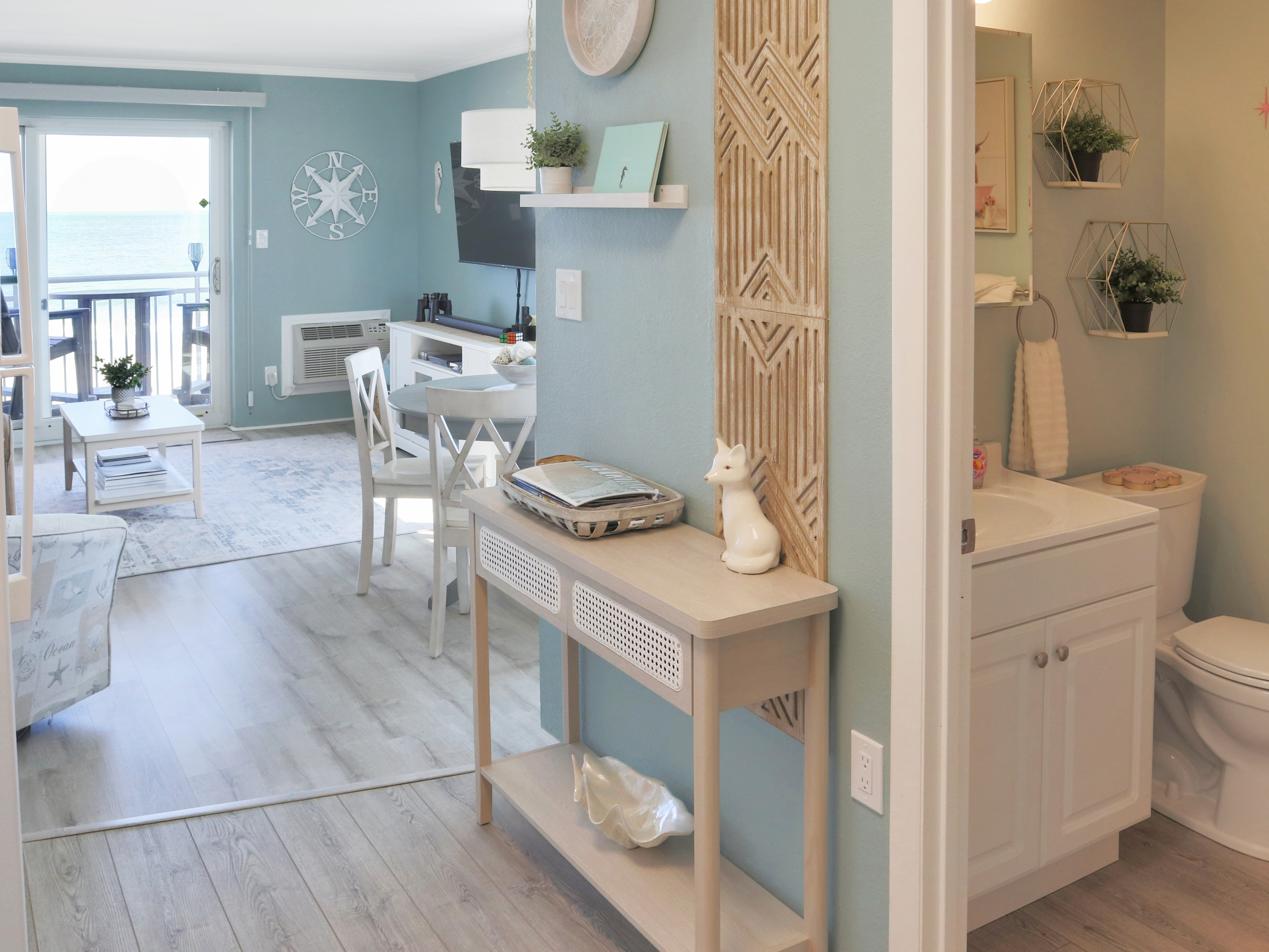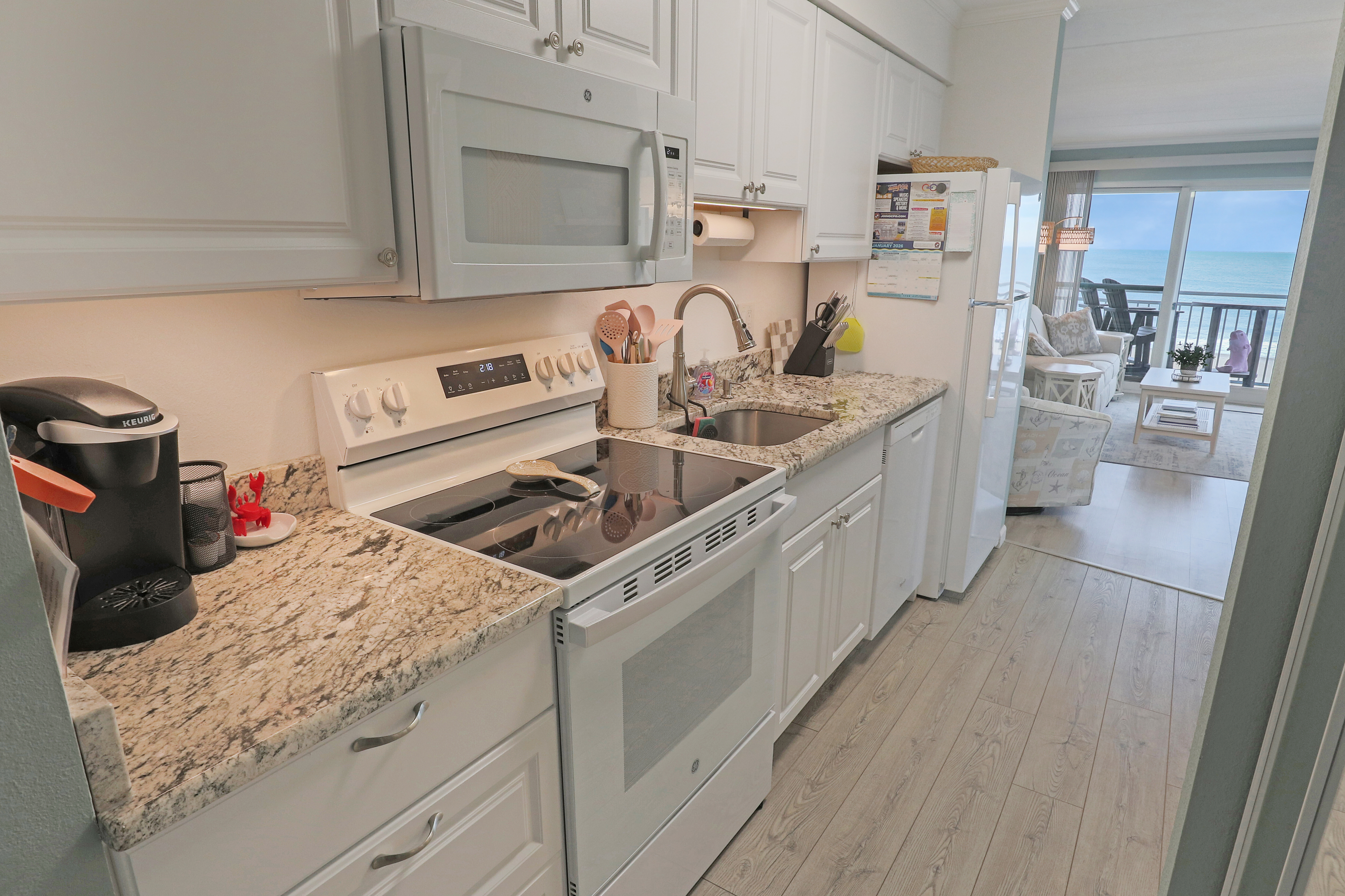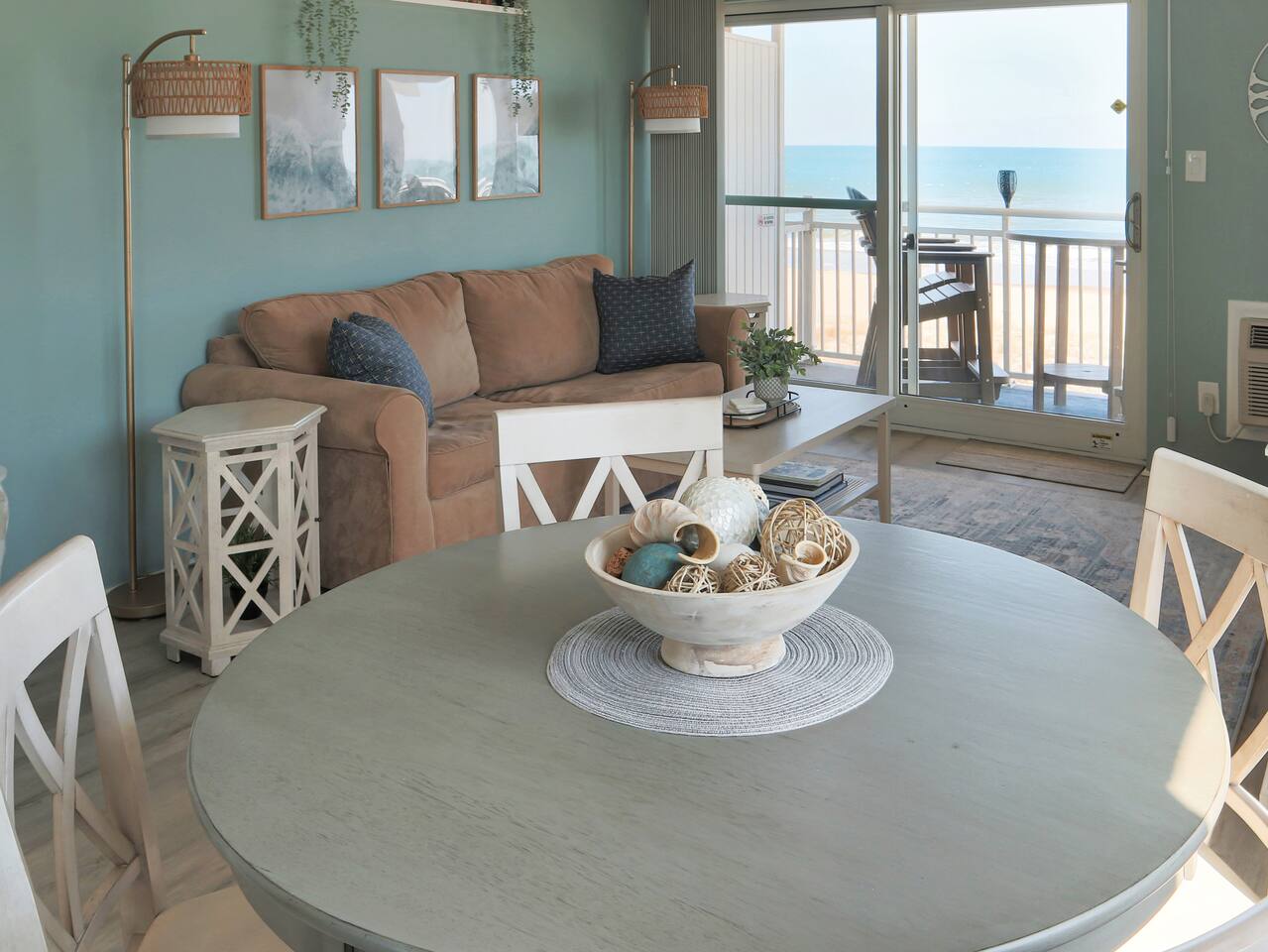 Wake up to stunning ocean views in our bright, beautifully decorated corner-unit condo, just steps to the beach! Enjoy a clean, modern space with your own 4th floor balcony. You'll love the cozy home-like feel and thoughtful amenities—from games and streaming apps to a fully stocked kitchen. With easy check-in, responsive hosts, and prime midtown location, it’s the perfect beachside getaway for couples & small families alike.